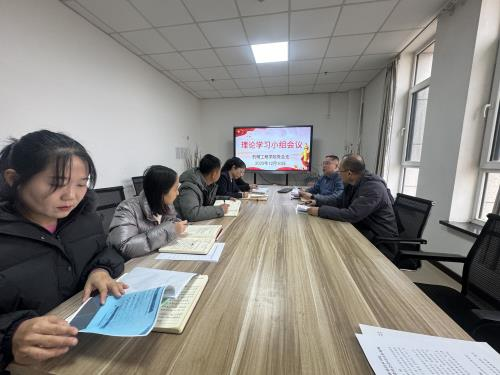 12月10日下午,tyc33455cc太阳成集团在A505会议室召开理论学习小组专题学习会,深入学习中国共产党第二十届中央委员会第四次全体会议精神,学院党总支书记周宇明主持会议,理论学习小组全体成员参会。