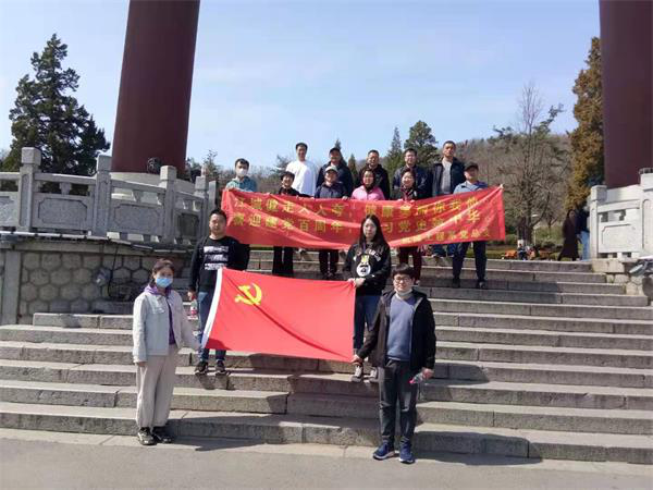四月的天气温暖舒适,没有暴雨的狂澜,没有烈日的炙烤,伴着鸟语花香,机械工程系教工乘车抵达锦江山公园门前,在公园主入口广场合影留念,接着向主入口广场步行道出发,开始庆祝建党百年穿越之旅。