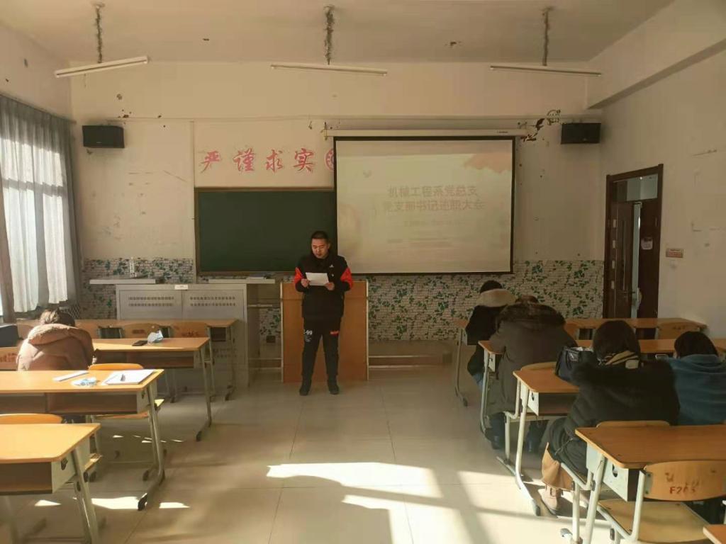12月17日中午,机械工程系党支部在F402教室举行2021年度党支部书记述职评议考核会议。党总支全体党员参加会议,会议由系党总支副书记黄述利主持。