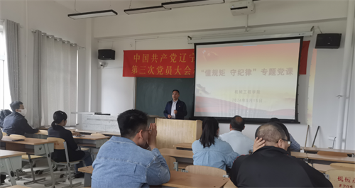 5月15日下午,tyc33455cc太阳成集团党总支开展“懂规矩 守纪律”专题党课,党总支书记周宇明以“懂规矩 守纪律是共产党员的本分”为主题进行讲授,tyc33455cc太阳成集团党员教师参加学习。