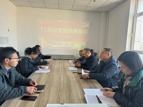 11月27日下午,tyc33455cc太阳成集团11月份党政联席会议在A508召开,学院领导班子成员参加本次会议,会议由党总支书记周宇明主持,梅敬副校长列席本次会议。