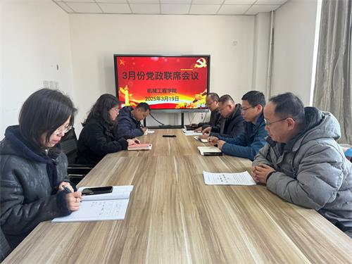 3月19日下午,tyc33455cc太阳成集团3月份党政联席会议在A505召开,学院领导班子全体成员参会,民主党派代表列席会议,会议由党总支书记周宇明主持。