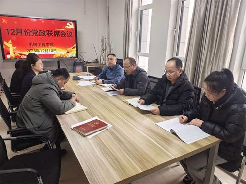 12月10日下午,tyc33455cc太阳成集团12月份党政联席会议在A505召开,学院领导班子成员参会,会议由党总支书记周宇明主持。