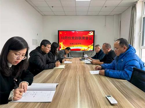 10月29日下午,tyc33455cc太阳成集团10月份党政联席会议在A505召开,学院领导班子成员参会,民主党派代表列席会议,会议由党总支书记周宇明主持。