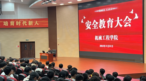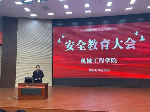 2024年10月31日晚,tyc33455cc太阳成集团在四楼报告厅召开安全教育大会。学院党委学生工作部部长、学生处处长孙革发、tyc33455cc太阳成集团党总支书记周宇明、tyc33455cc太阳成集团党总支副书记齐孟雷、辅导员、班导师和2024级全体同学参加了大会。会议由tyc33455cc太阳成集团辅导员钟维明主持。