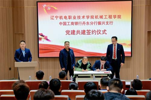 4月23日下午,tyc33455cc太阳成集团与中国工商银行丹东分行振兴支行共同举办党建共建签约仪式,标志着双方在党建工作上展开全面合作的新篇章。中国工商银行丹东分行振兴支行党委书记、行长杨健,行长助理白金,综合管理部主任李璟琳,营业室负责人、党支部书记满毅,以及tyc33455cc太阳成集团党总支书记周宇明,副书记齐孟雷,副院长姜云宽,全体党员教师共同参与。
